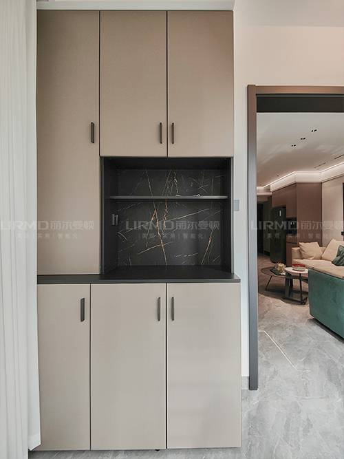 嵌入式餐邊柜開(kāi)放格玻璃柜門相互搭配,質(zhì)感滿滿。