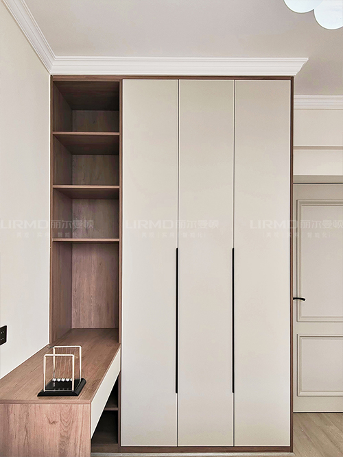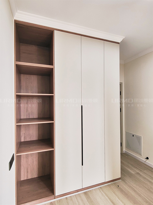 右側(cè)一門到頂膚感柜門,干凈又不失質(zhì)感,滿滿的收納空間。