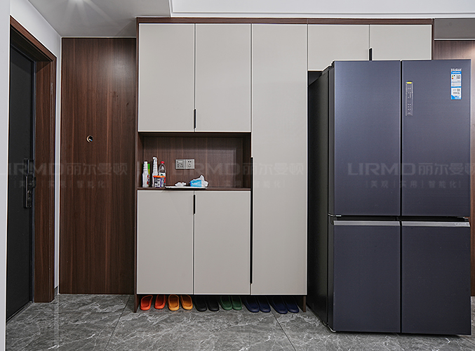 入戶玄關(guān)柜,可作為鞋柜/衣柜/收納區(qū),淺色柜門加深色柜體的碰撞,視覺(jué)效果更好,
