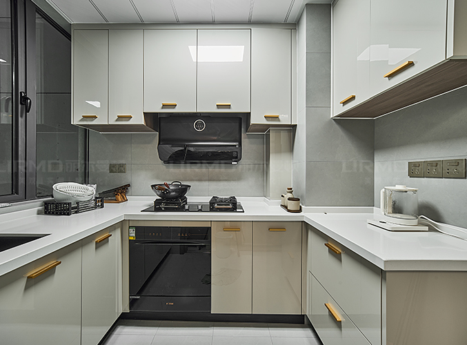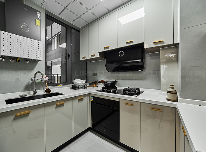 立面簡(jiǎn)致,紋理細(xì)膩,上下方都有收納柜,視覺層次更加豐富。