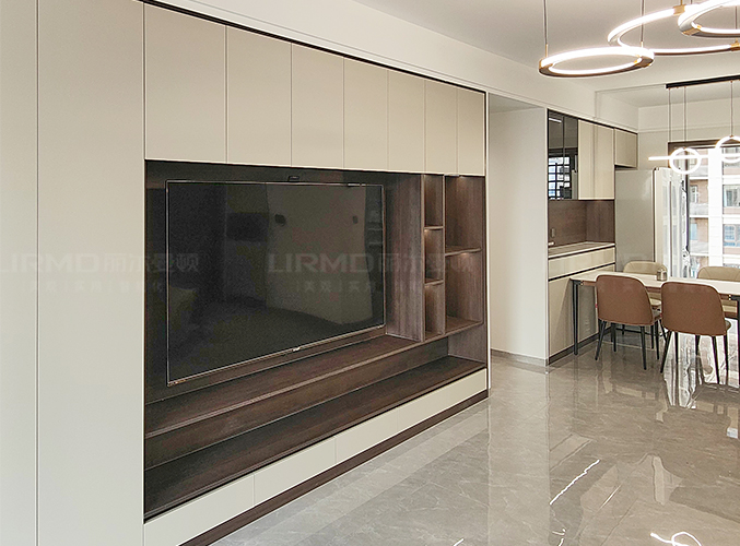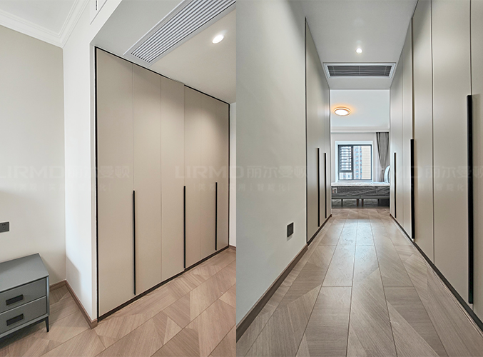 柜子一門到頂設(shè)計,實木柜體搭配PET膚感柜門,質(zhì)感超不錯,多組設(shè)計更是實現(xiàn)收納需求,