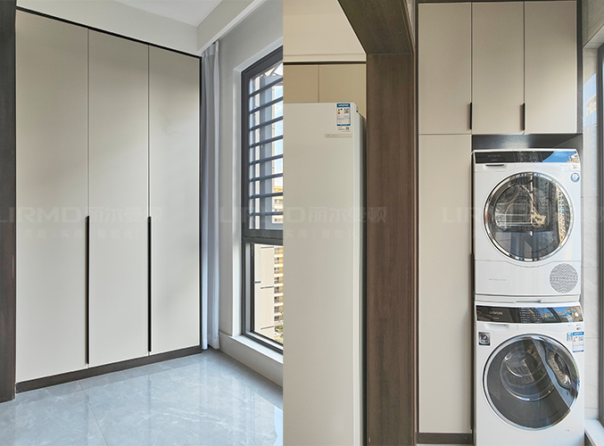 一門到頂柜子設(shè)計,和內(nèi)嵌式洗衣機(jī)設(shè)計,方便實用