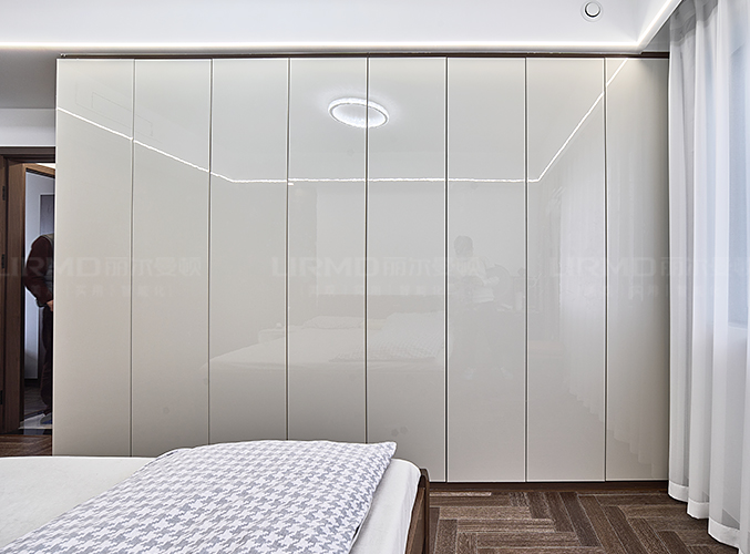 實木柜體搭配PET膚感柜門,鞋柜側面采用圓弧角柜設計,起到遮擋緩沖作用,