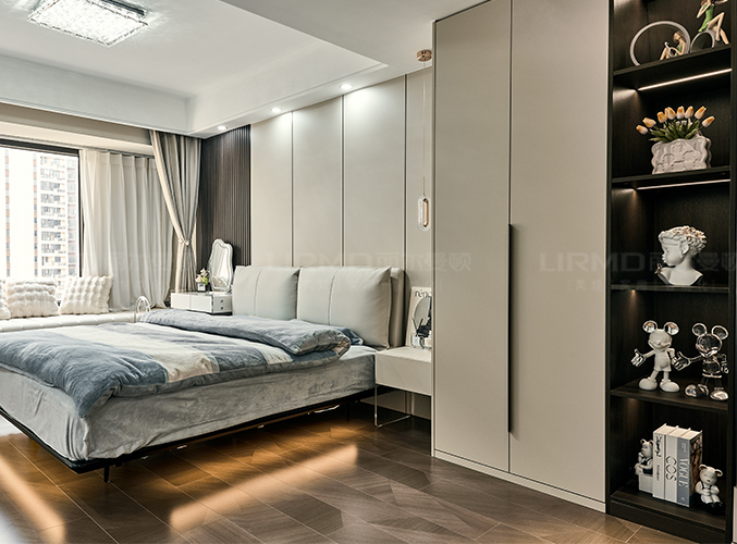 18mm厚杉木芯板,實木柜體搭配PET膚感柜門,下方懸空設計,好放置鞋子,