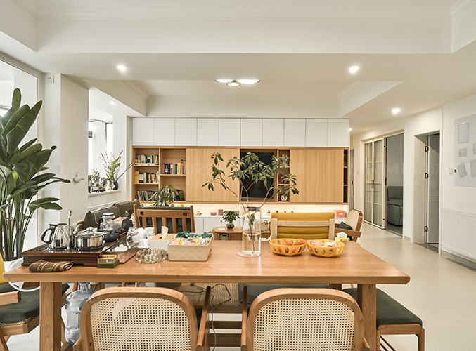 一整墻柜子視覺效果美觀且大氣,實木柜體搭配PET膚感柜門,一門到頂,質感超不錯,