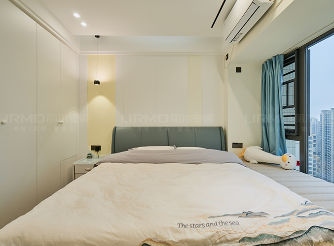 實木柜體搭配PET膚感柜門,一門到頂,無主燈設計營造空間增次,,整體顏色統一,美觀且大氣。