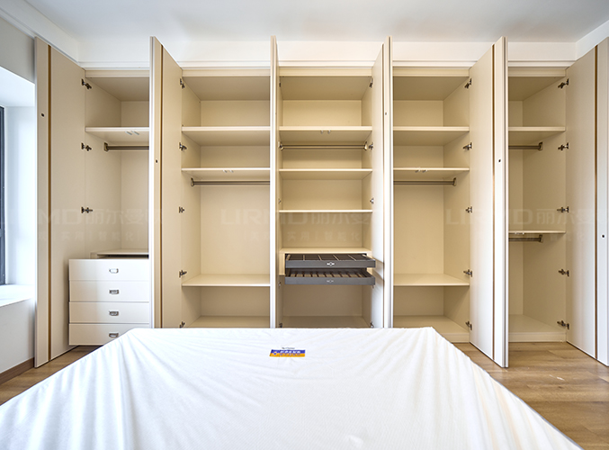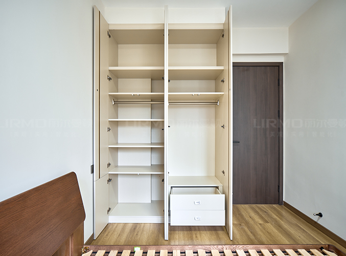 實(shí)木柜體搭配PET膚感柜門(mén),質(zhì)感超不錯(cuò),一門(mén)到頂柜子設(shè)計(jì),多規(guī)格掛衣架+抽屜