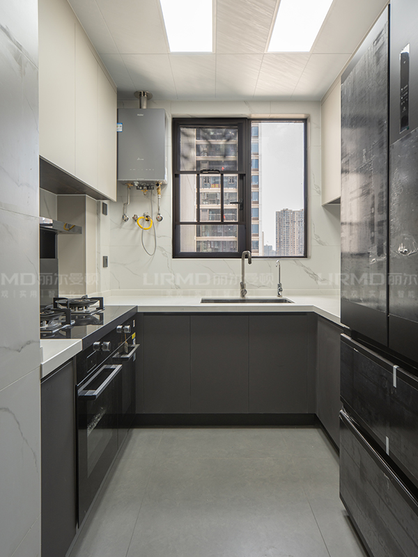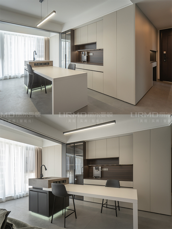 超長到頂餐邊柜、陽臺(tái)儲(chǔ)物柜、陽臺(tái)家政柜、西廚區(qū)中島臺(tái)、中廚區(qū)u型櫥柜、