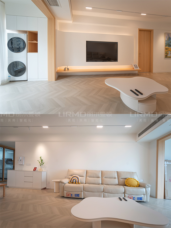 600*1200木紋大磚通鋪,與整體色調(diào)相呼應,放大空間的同時又不失溫馨。
