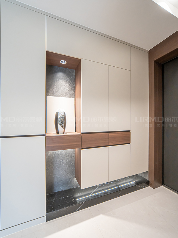 全屋定制:柜體18厚杉木芯板、歐松板膚感柜門、進口百隆五金