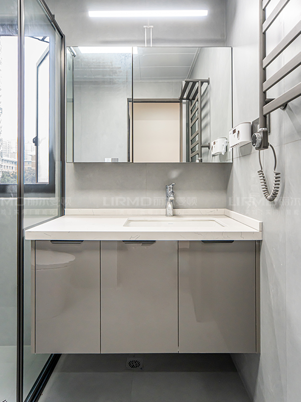 整體以黑白灰為基調(diào),煙熏尤加利與水泥灰搭配,空間整體性更統(tǒng)一
