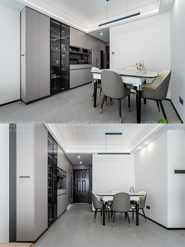 玻璃柜門搭配木質柜門,增加層次感,減少厚重感