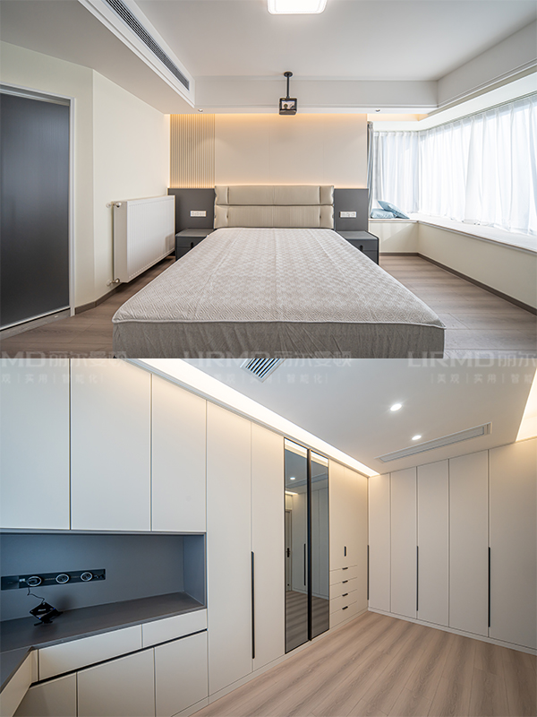 長(zhǎng)沙靠譜裝修公司,長(zhǎng)沙靠譜全屋定制,臥室衣柜加梳妝臺(tái),現(xiàn)代簡(jiǎn)約風(fēng),