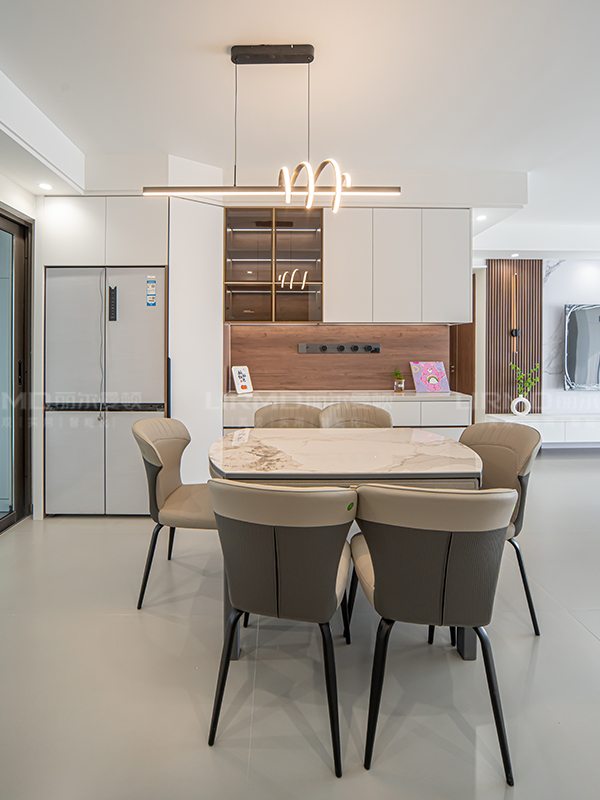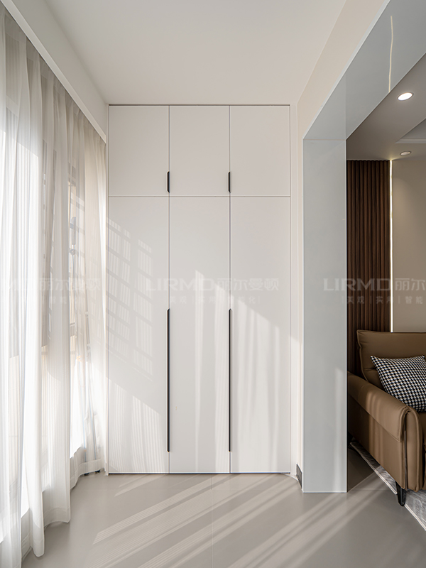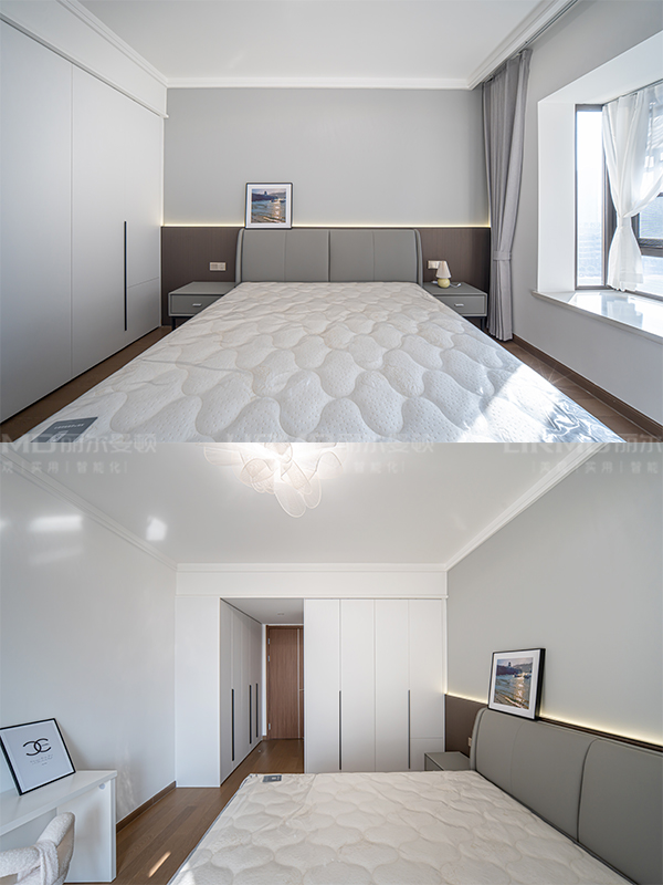 淺色與深色碰撞搭配,全房采用淺色系柜門,深色系家具搭配,增強空間的立體感
