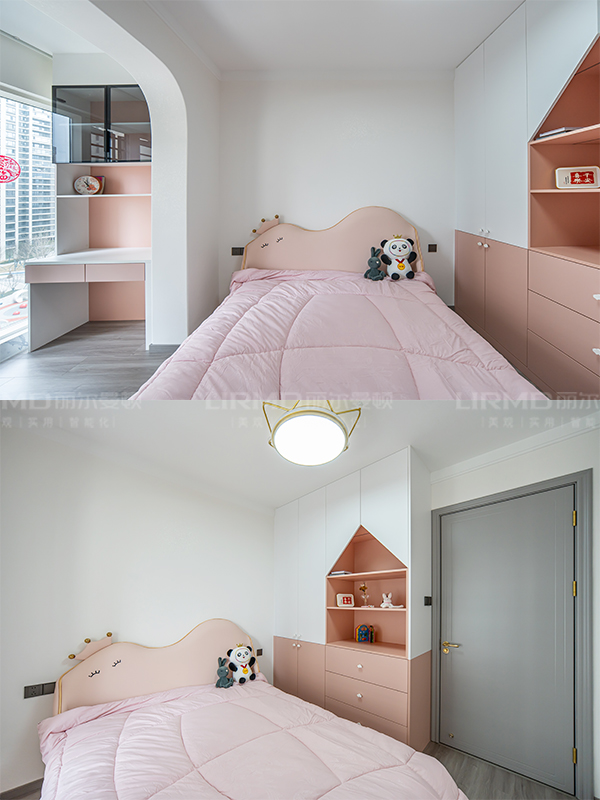 兒童房各有對應色彩,戶型和圓形相結合,各有獨立色彩,體現溫馨又高級的小窩