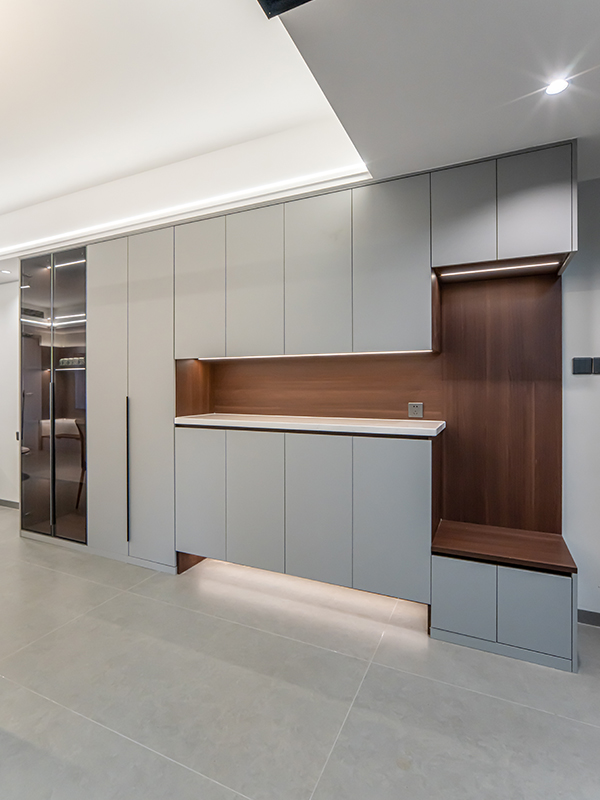 鞋柜結合裝飾柜一體,加大功能性,讓柜子的美感顯得格外精致,更具空間感有種聯動性