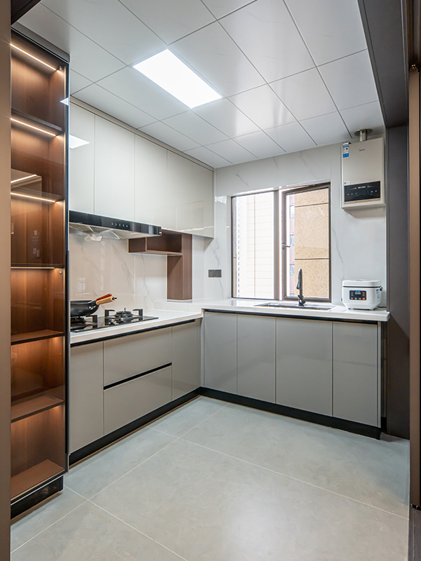 開放式餐廚一體化,讓原本單調乏味的空間添加了互動交流的樂趣,讓業主在做餐時不再孤立