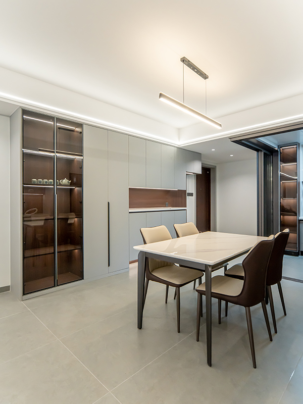 開放式餐廚一體化,讓原本單調乏味的空間添加了互動交流的樂趣,讓業主在做餐時不再孤立