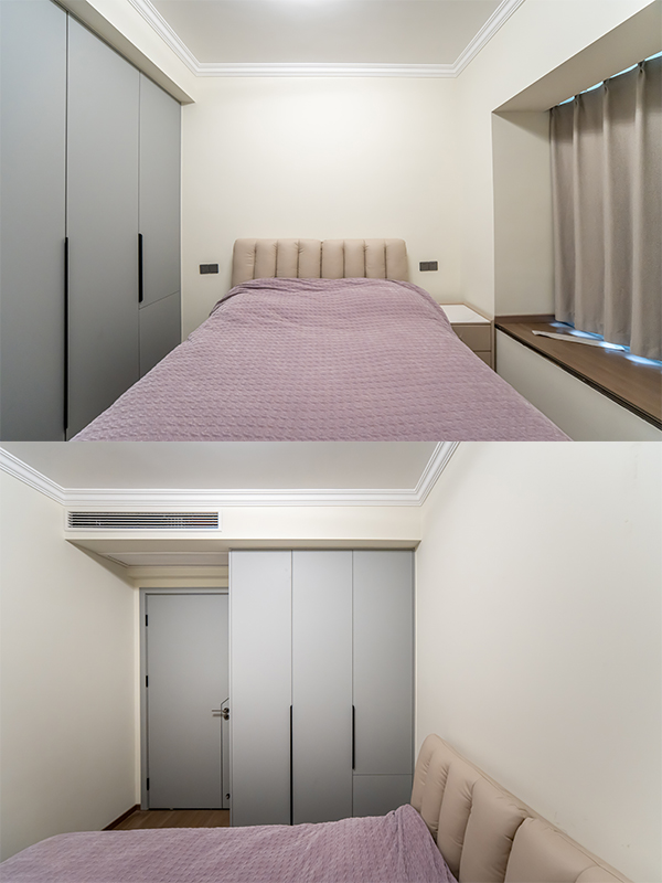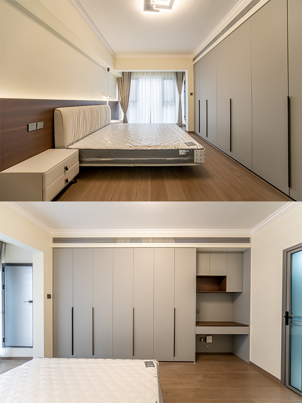 臥室衣柜小設計,考慮衣柜的功能性,主臥床頭不對向衛生間門,超符合業主想法