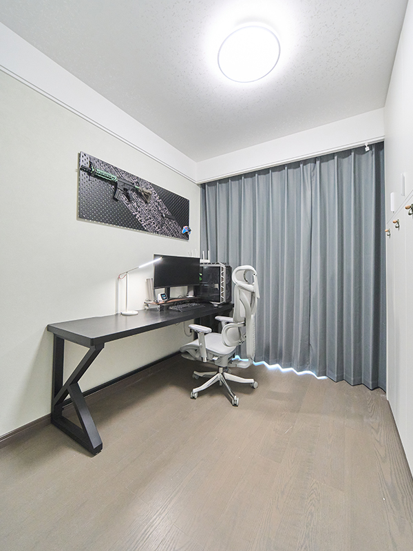 滿墻電視柜用開放格和玻璃門做點綴,讓整個空間高級又細膩
