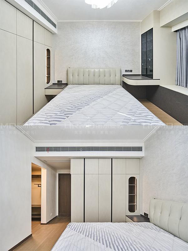 主臥衣帽間壁掛系統(tǒng)簡約美觀,主臥飄窗梳妝辦公兩不誤