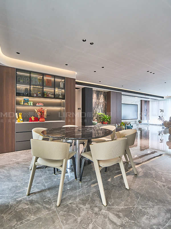 沙發(fā)背景和電視背景均采用巖板設(shè)計(jì),點(diǎn)綴空間,簡(jiǎn)單不失細(xì)節(jié),低調(diào)不失奢華