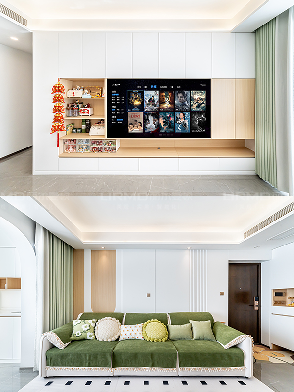 滿墻電視柜收納拉滿,轉角圓弧設計,造型精致美觀又安全感滿滿,防止磕碰