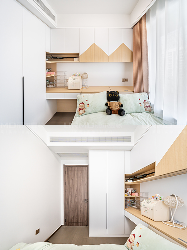 超多個性化衣柜,床頭柜+衣柜一體,原木+珍珠白的穿插搭配,高級感爆棚