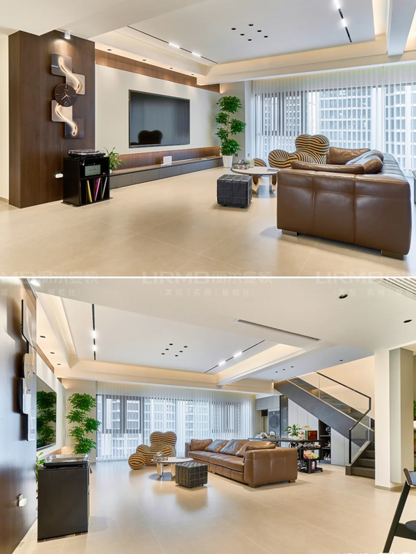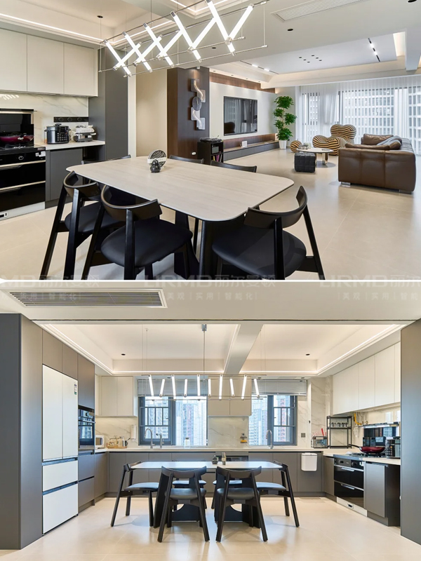 隱形設計:所有門套、踢腳線做極簡收口,連空調(diào)風口都定制同色格柵,強迫癥狂喜