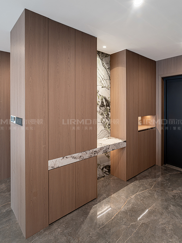 主題以輕奢暖色調為主,輕奢巖板結合墻板,打造現代舒適不過時的家