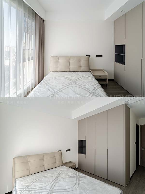 房間的衣柜進門處做圓弧角搭配無障礙設計,使用方便舒適