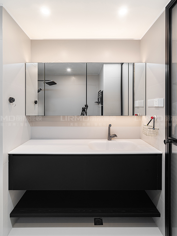 現(xiàn)代黑白灰搭配些許跳色,既顯個性又不張揚。適當使用膚感純黑色系突出硬裝中的層次感,